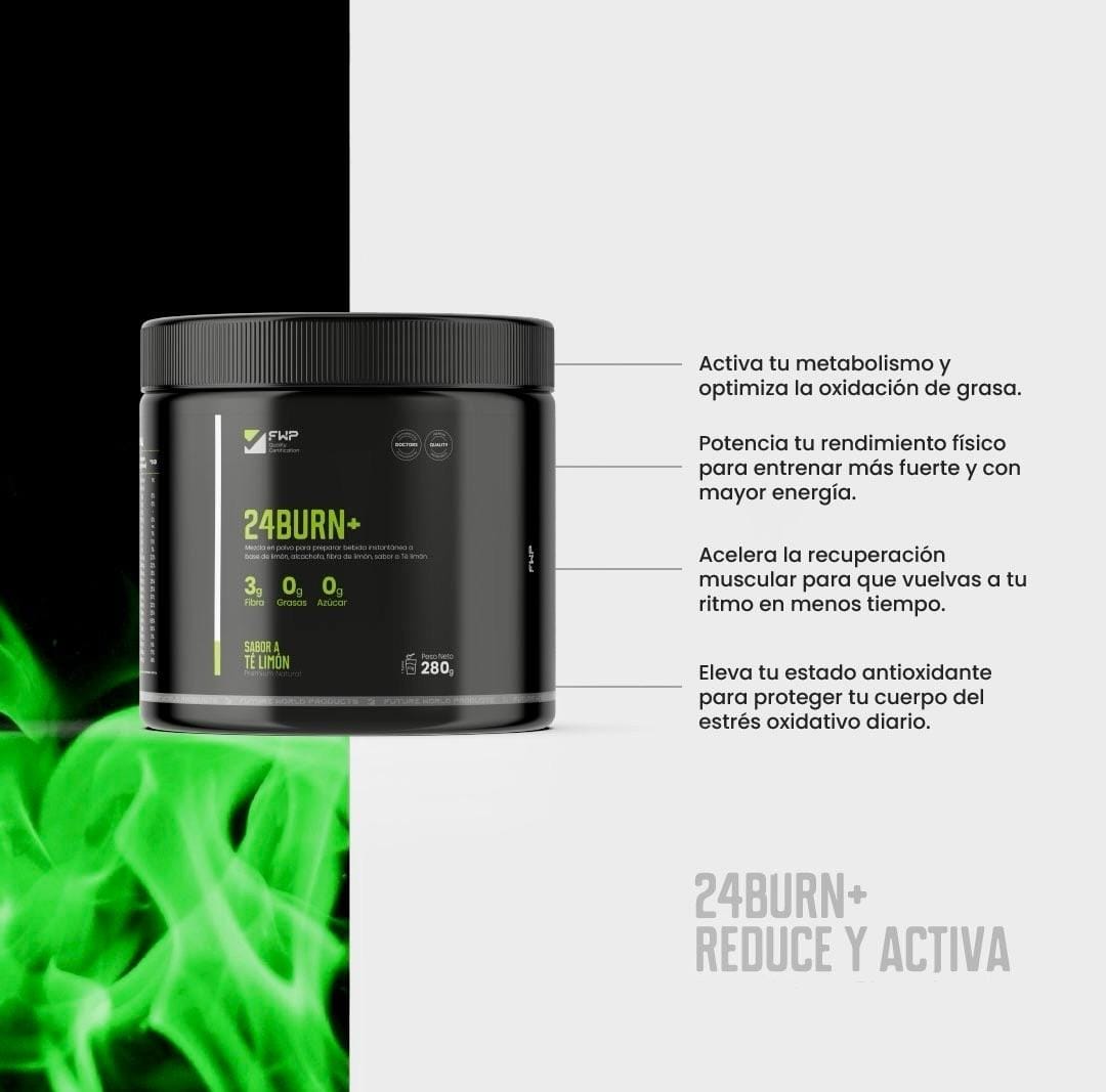 Agrega 1 cucharada (15 g) de 24 BURN en 200 ml de agua , mezcla por unos segundos y consume ✨